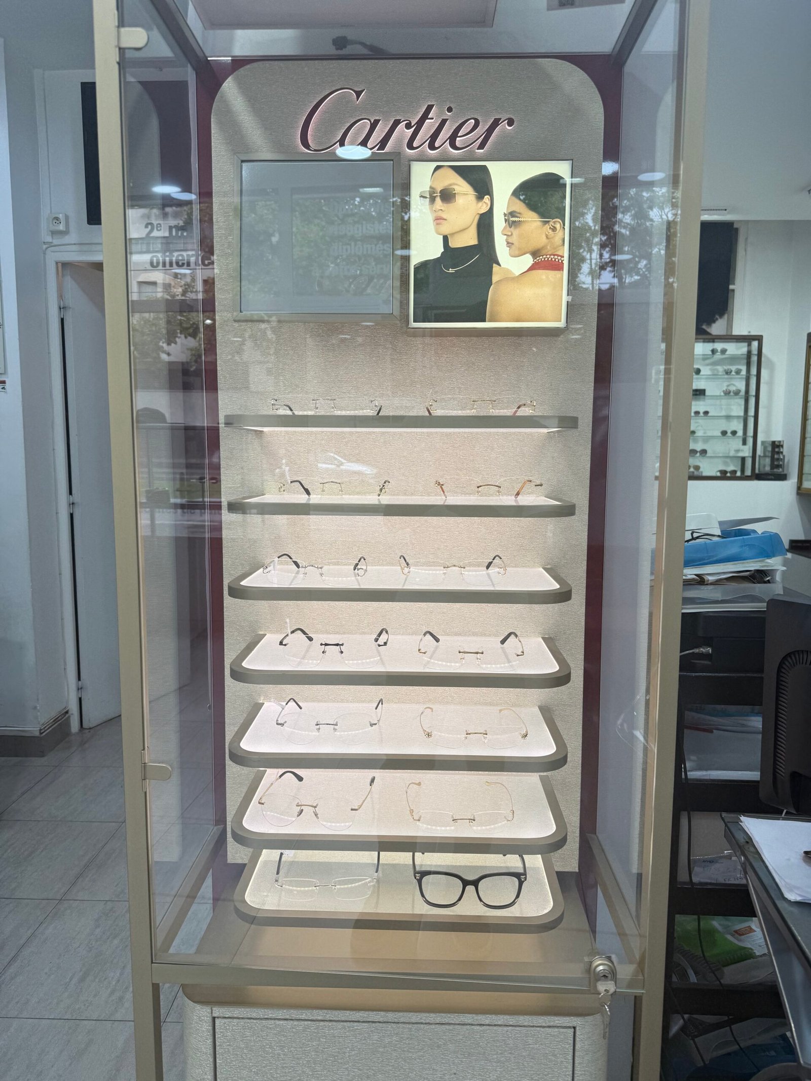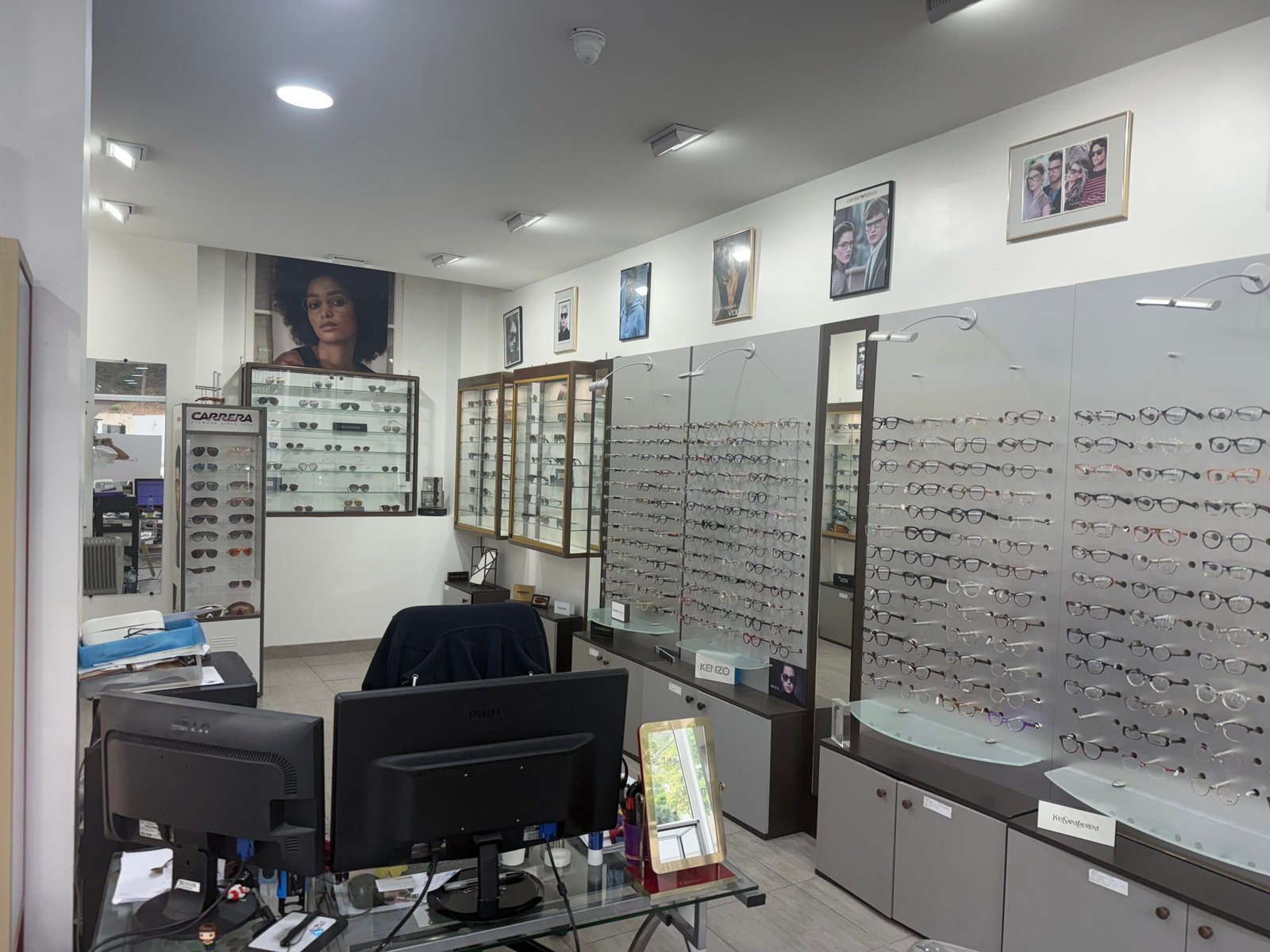 A l'entrée du magasin exprime la philosophie d'Optical Confort : un espace clair, ordonné, où chaque collection est mise en valeur. Les zones d'essayage sont confortables, les conseils sont donnés dans un cadre calme et accueillant, et les équipements techniques (pour les examens de vue ou les montages de verres) sont de dernière génération.
